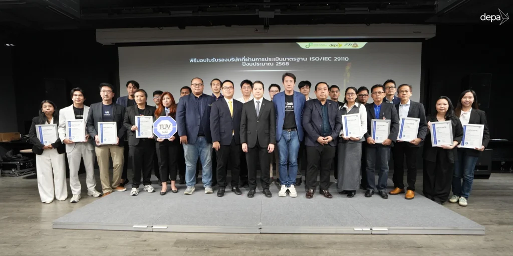 พิธีมอบใบรับรองในครั้งนี้ จัดขึ้นโดยความร่วมมือระหว่าง สำนักงานส่งเสริมเศรษฐกิจดิจิทัล (depa) นำโดย ดร.วาริน รัชนานุสรณ์ รักษาการรองผู้อำนวยการใหญ่ และ ดร.สักกเวท ยอแสง ผู้อำนวยการฝ่ายส่งเสริมอุตสาหกรรมดิจิทัล ร่วมกับ กลุ่มอุตสาหกรรมดิจิทัล สภาอุตสาหกรรมแห่งประเทศไทย (FTI) นำโดย คุณอมฤต ฟรานเซน ประธานกลุ่มอุตสาหกรรมดิจิทัล และคุณประกิต สังข์ป่า ที่ปรึกษากลุ่มฯ ซึ่งโครงการนี้ตอกย้ำถึงความมุ่งมั่นในการยกระดับศักยภาพผู้ประกอบการดิจิทัลไทยให้ก้าวสู่มาตรฐานสากลอย่างเป็นรูปธรรม